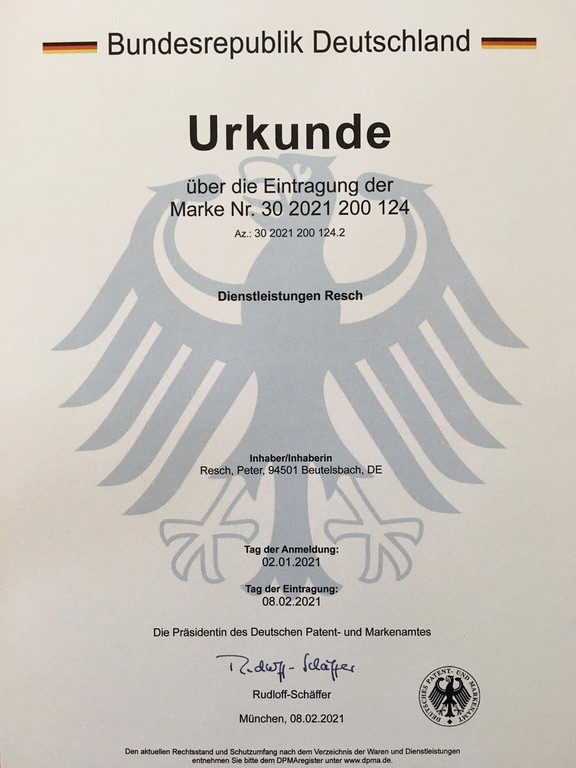 Inhaber: Peter Resch - Rechtsform: Einzelunternehmen - Steuernummer: 153/262/06285 - Institutionskennzeichen: 590901328